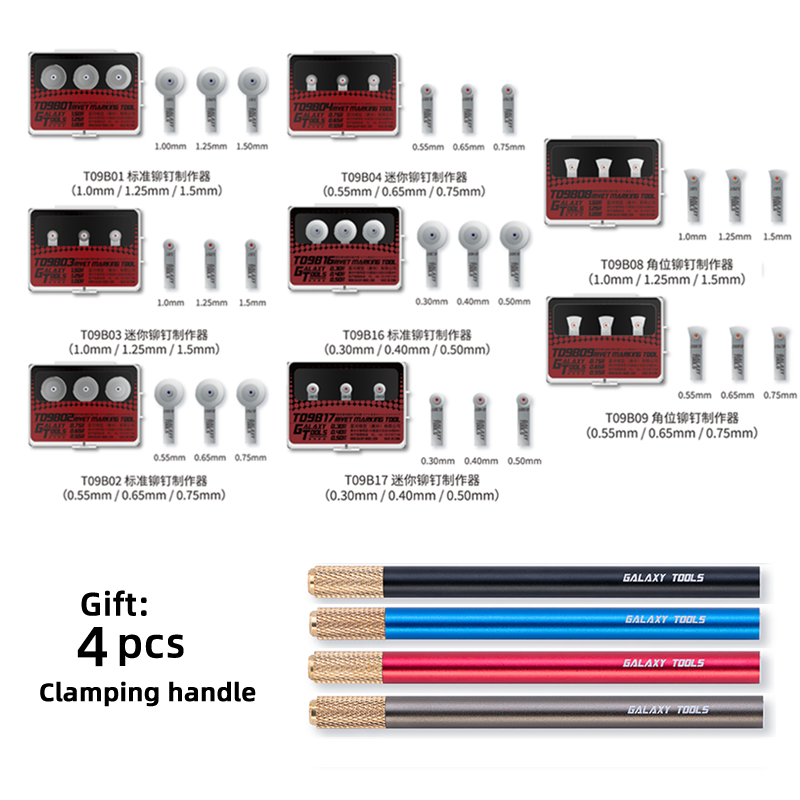 NOTE:Rivet Wheel Tool, handle not included. We offer handles in 4 colors for you to choose from. If you purchase the complete tool set, 4 handles will be included as a gift.