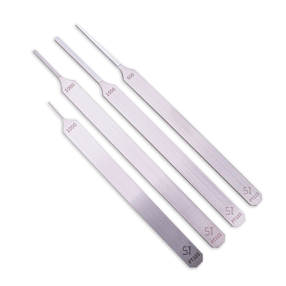 This file is crafted from premium stainless steel. With a thickness of just 1mm, it effortlessly reaches tight spaces. Its dual-sided design features #600 grit on one side and #1000 grit on the other. Switch sides for grinding or polishing. Four distinct shapes cater to varied needs. The cross-hatch pattern ensures high cutting efficiency with minimal effort and simplifies cleaning.